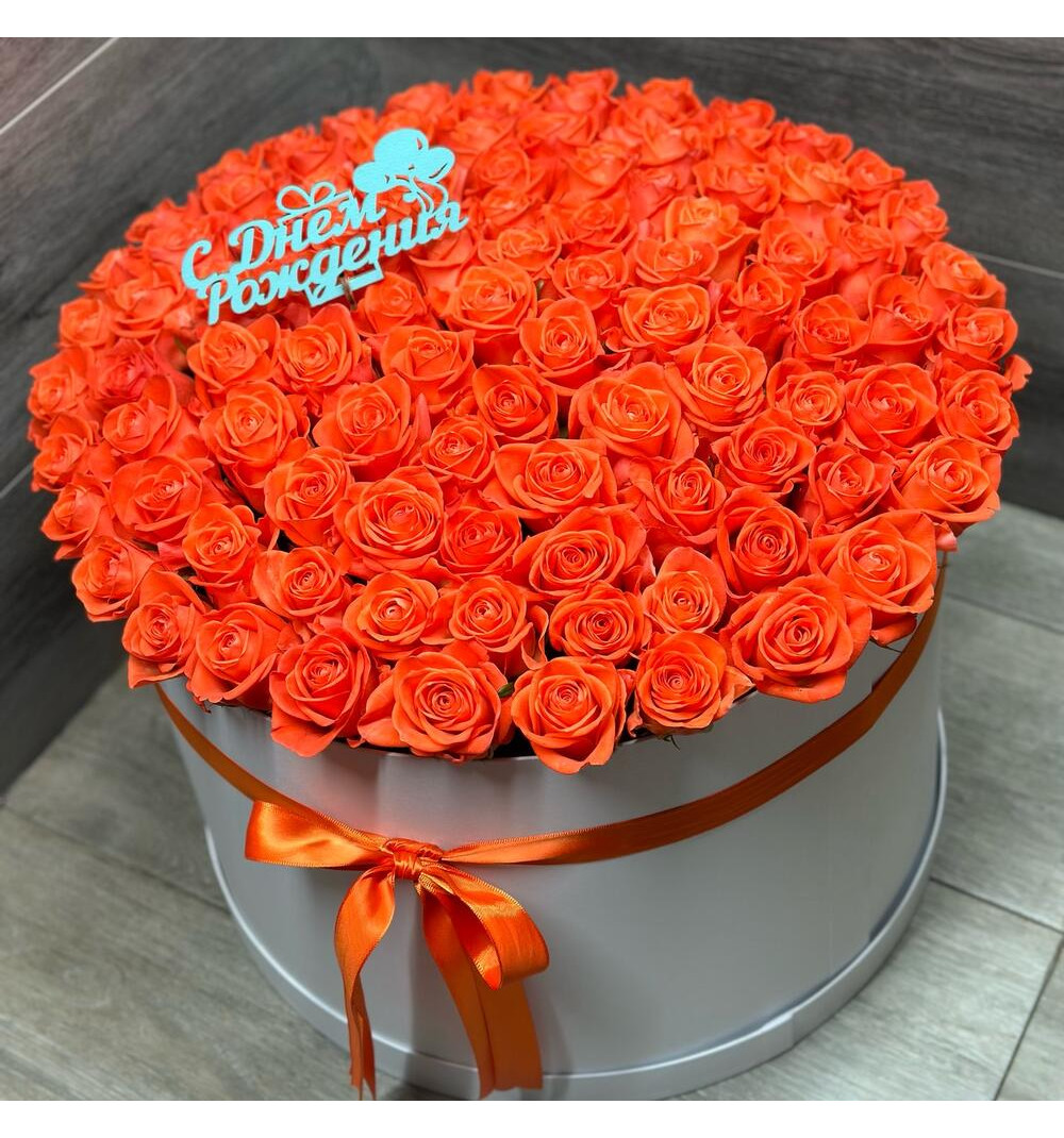 "101 Оранжевая Роза в Коробке" - это великолепный букет из свежих и ярких оранжевых роз, олицетворяющих эмоции страсти и энергии. Этот эксклюзивный аранжированный букет, состоящий из 101 розы, наполняет воздух ароматом свежести и восхищения. Доставка такого прекрасного цветочного подарка обязательно подарит радость и удивление получателю.